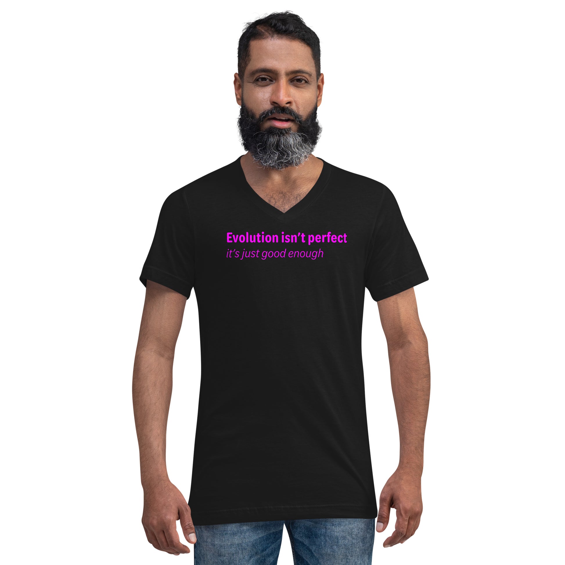 Evolution isn't perfect - Magenta Text - Mens V-Neck T-Shirt