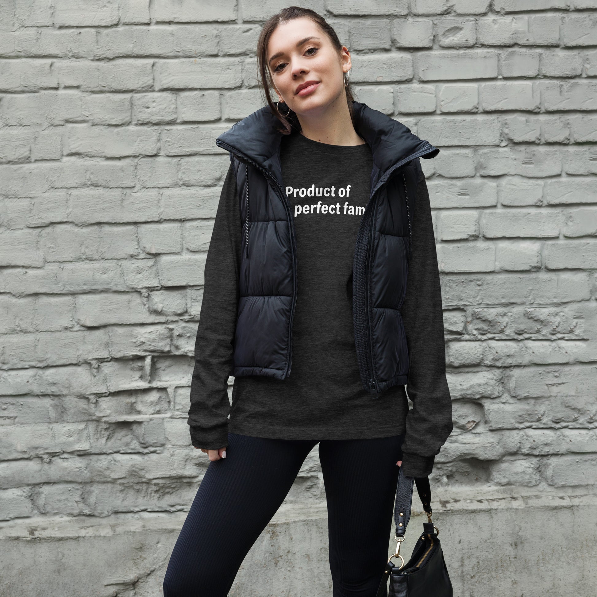 Product of a Perfect Family - White text - Womens Long Sleeve Tee