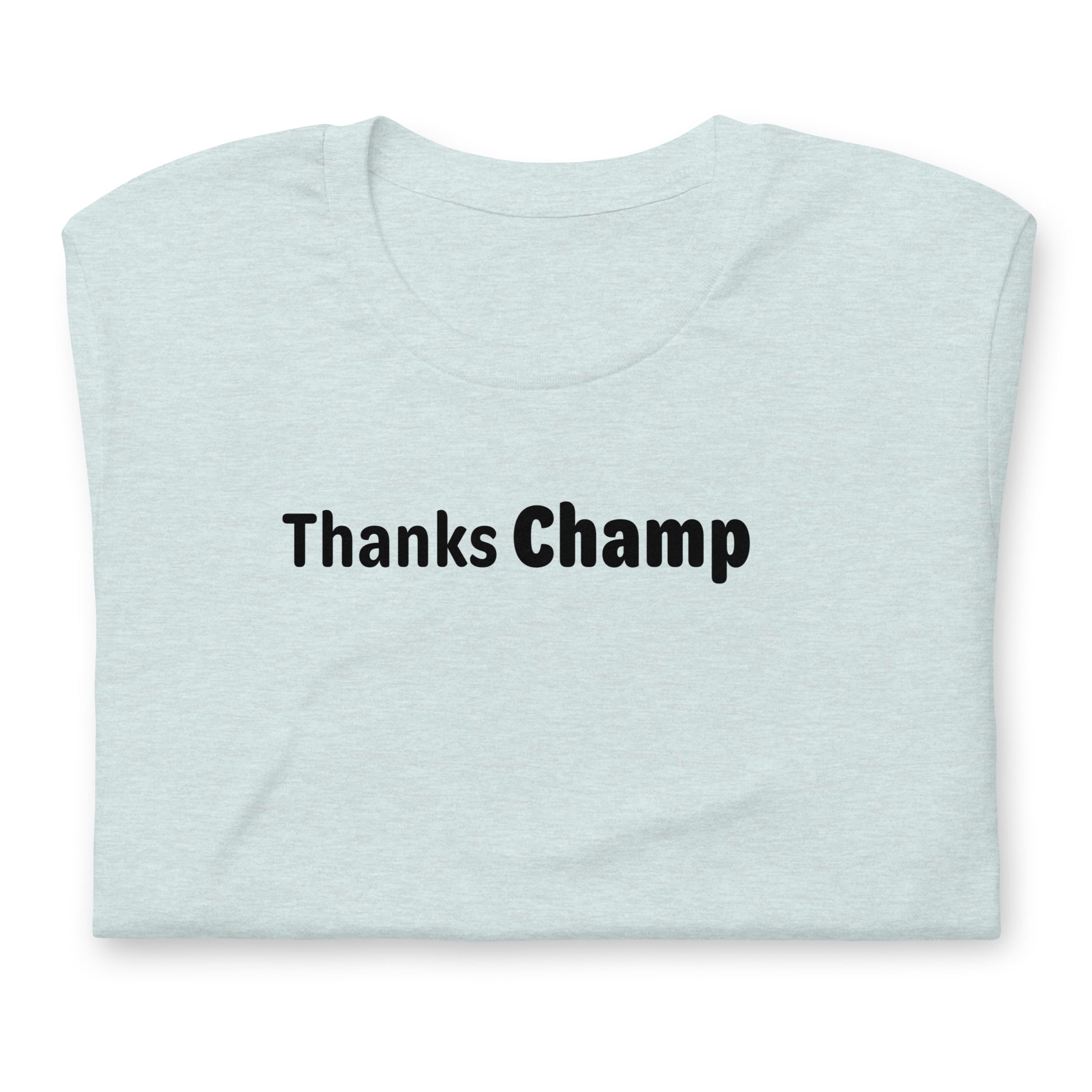 A sarcastic saying "Thanks Champ". A perfect top showing off this saying which is a perfect addition for your wardrobe or as a gift for someone.